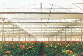* 保温型遮阳网 它由铝箔条和聚酯薄膜条通过纱线交错编织而成。铝箔条具有很好的太阳反射和热反射能力,聚酯薄膜条能透过太阳辐射但吸收热辐射,从而使幕布同时具有极好的降温和保温双重作用。其节能效果好,降低了加温费用。该保温幕即使在密闭的温室内也不形成水凝结,防雾滴好,主要用于温室的遮阳降温和夜间保温。